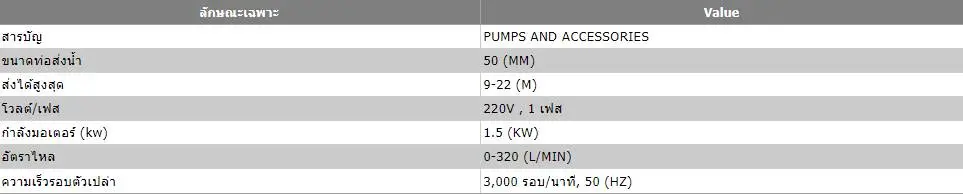 • ขนาดท่อส่งน้ำ : 50 (MM)